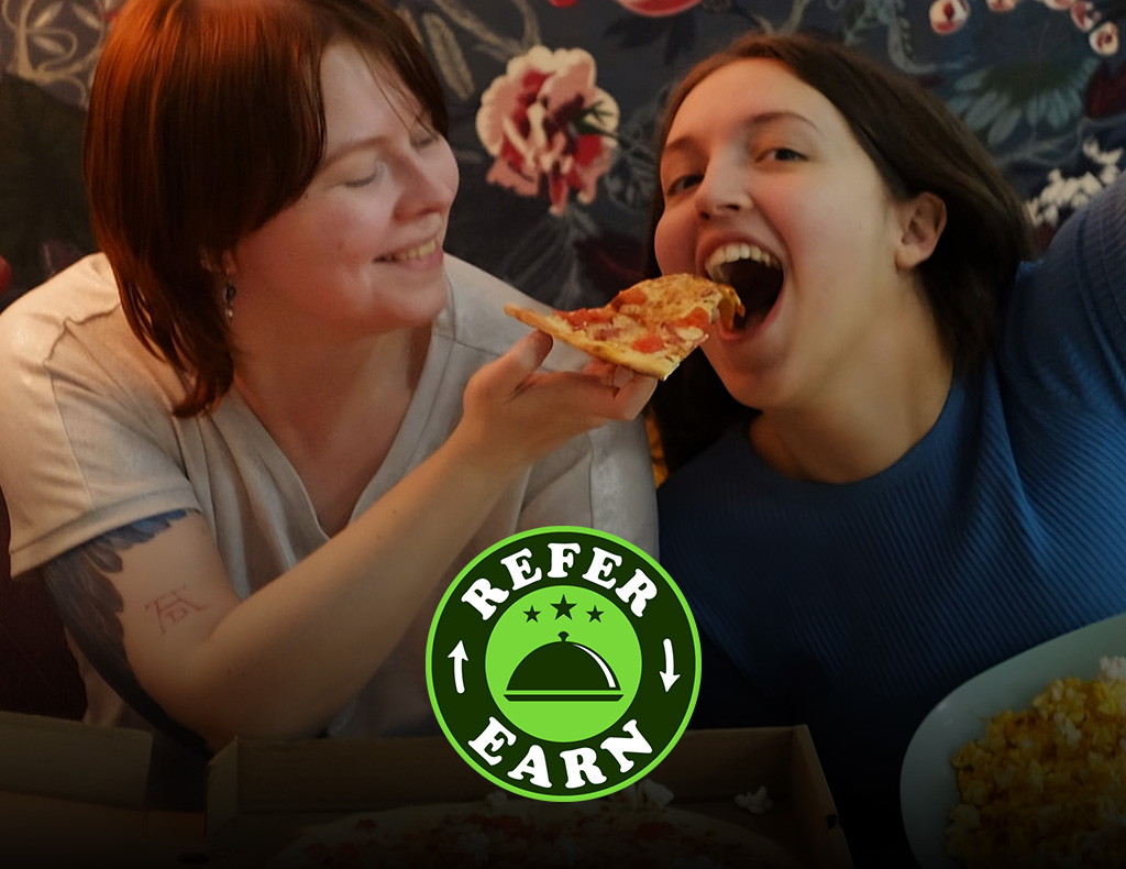 "Refer & Earn" er et system som lar kundene dine tjene Foodbonus ved å introdusere din restaurant. Når en kunde sender sin personlige handlelenke til en venn og et kjøp gjøres gjennom den lenken, tjener både den som foretar kjøpet og kunden som delte lenken Foodbonus.